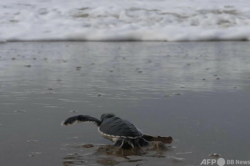 【1月8日 AFP】インドネシア・ジャワ(Java)島の国立公園の浜辺で、卵からかえったばかりのウミガメの赤ちゃん数十匹が、インド洋の波へとぱたぱたと歩き出した。
