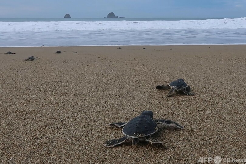 【1月8日 AFP】インドネシア・ジャワ(Java)島の国立公園の浜辺で、卵からかえったばかりのウミガメの赤ちゃん数十匹が、インド洋の波へとぱたぱたと歩き出した。