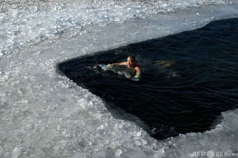 氷と泳ぐ猛者たち 今世紀最も冷え込む北京で