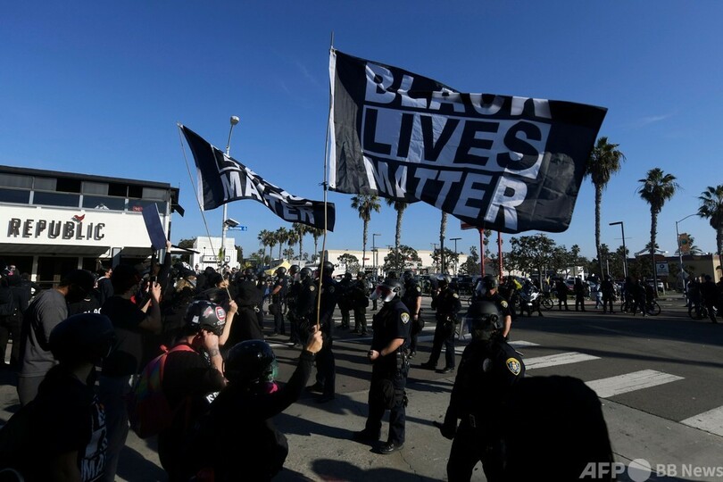 【1月10日 AFP】米カリフォルニア州サンディエゴ(San Diego)のパシフィックビーチ(Pacific Beach)で9日、ドナルド・トランプ(Donald Trump)大統領の支持者らによるデモが行われ、それに対抗する抗議デモも行われた。