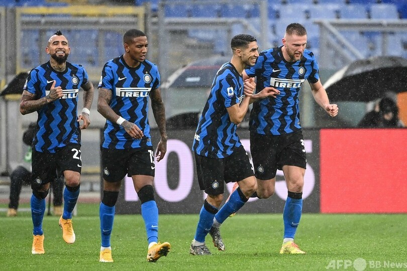 本拠地スタディオ・オリンピコ(Stadio Olimpico)でローマは17分、ロレンツォ・ペレグリーニ(Lorenzo Pellegrini)のゴールで先制したが、インテルは56分にミラン・シュクリニアル(Milan Skriniar)のヘディングで追いつくと、その7分後にはアクラフ・ハキミ(Achraf Hakimi)の弧を描いた見事なシュートで逆転に成功した。