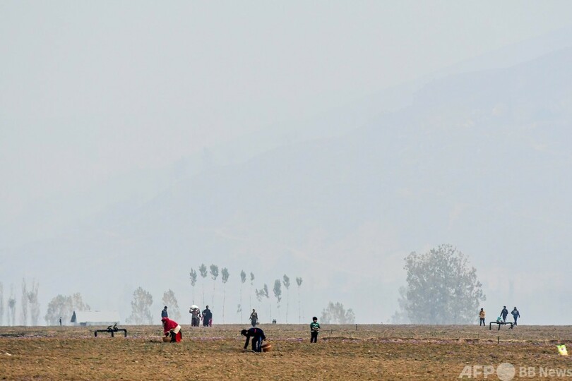 他方でリンゴの方が必要な水の量が少ないとの理由から、サフラン畑を果樹園に変えようとしている農家もあるという。(c)AFP/Parvaiz BUKHARI