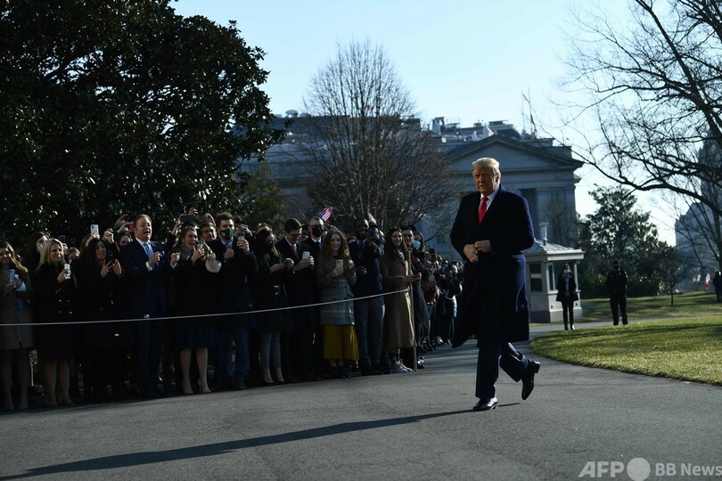 トランプ氏はホワイトハウス(White House)で、テキサス州に向けて飛び立つ大統領専用ヘリ「マリーンワン(Marine One)」に乗り込む際、13日に予定されている下院での弾劾訴追決議案の採決は「政治史上最大の魔女狩りの継続」だと主張。自身の支持者数千人に対し連邦議会議事堂に向けて行進するよう呼び掛けた先週の演説と、その直後に起きた議会占拠事件との関連性を否定した。