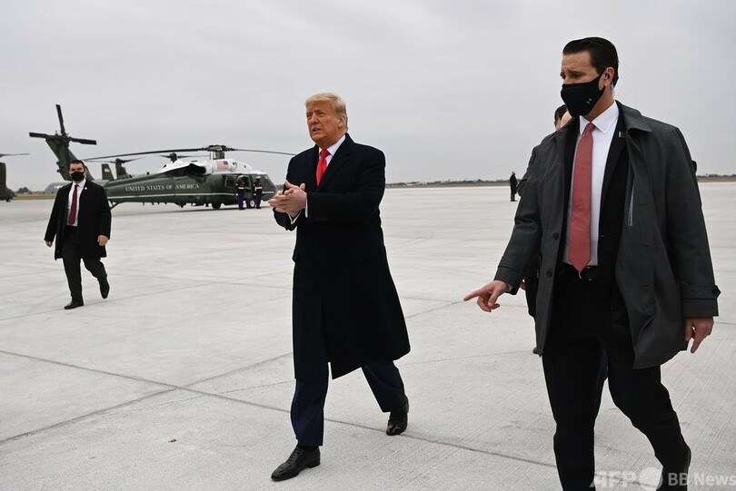 トランプ氏はホワイトハウス(White House)で、テキサス州に向けて飛び立つ大統領専用ヘリ「マリーンワン(Marine One)」に乗り込む際、13日に予定されている下院での弾劾訴追決議案の採決は「政治史上最大の魔女狩りの継続」だと主張。自身の支持者数千人に対し連邦議会議事堂に向けて行進するよう呼び掛けた先週の演説と、その直後に起きた議会占拠事件との関連性を否定した。