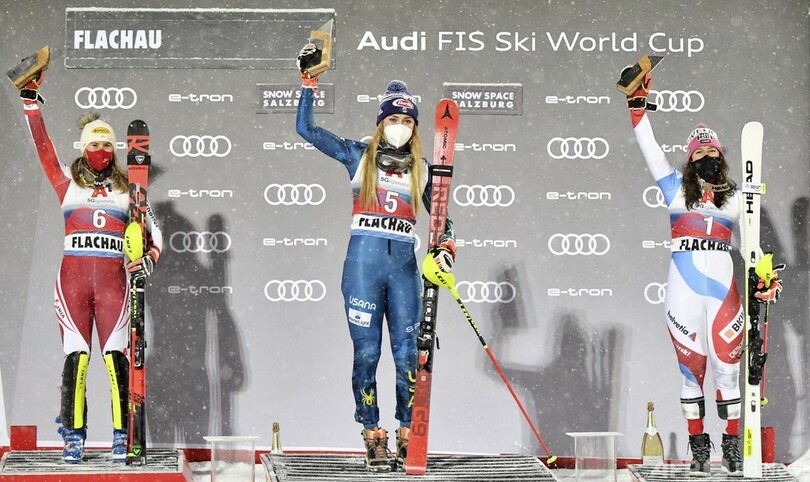 シフリンは地元期待のカタリナ・リンスベルガー(Katharina Liensberger、オーストリア)に0秒19差、ウェンディー・ホルドナー(Wendy Holdener、スイス)に0秒43差をつけてW杯68勝目。通算勝利数でマルセル・ヒルシャー(Marcel Hirscher)氏を抜いて単独3位に浮上すると共に、25歳で100回目の表彰台入りも果たした。