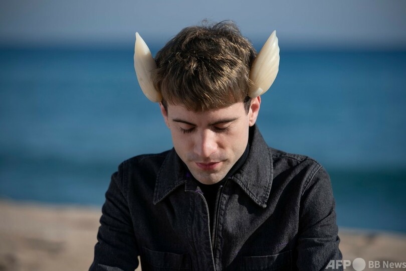 【1月22日 AFP】スペインのサイボーグ・アーティスト、マネル・デ・アグアス(Manel De Aguas)さん(24)。「種の超越」を自認し、気圧や湿度、温度を感知できる自作のインプラント「ウェザーフィン(Weather Fins)」を頭蓋骨の両側面に埋め込んでいる。(c)AFP