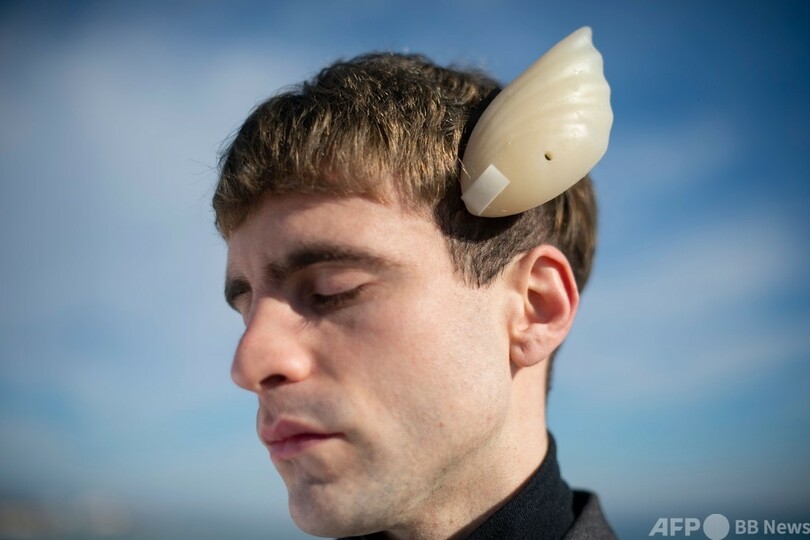 【1月22日 AFP】スペインのサイボーグ・アーティスト、マネル・デ・アグアス(Manel De Aguas)さん(24)。「種の超越」を自認し、気圧や湿度、温度を感知できる自作のインプラント「ウェザーフィン(Weather Fins)」を頭蓋骨の両側面に埋め込んでいる。(c)AFP