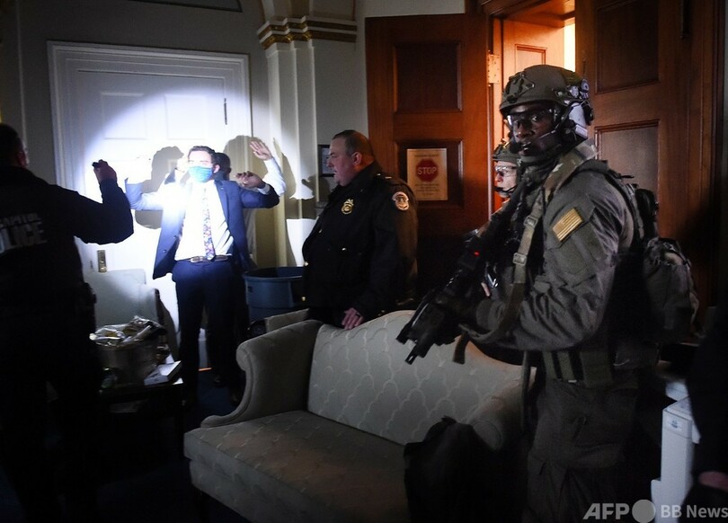 議事堂内には、バイデン氏の勝利を認定するため、こういう機会でなければ開かれない上院(100議席)と下院(435議席)による合同会議に議員数百人が集まっていた。数人の共和党議員は大統領選の結果に異議申し立てを行うと明言しており、トランプ氏自身も証拠を示すことなく不正選挙だと主張し、腹心のマイク・ペンス(Mike Pence)副大統領に選挙結果を無効にするよう圧力をかけていた。