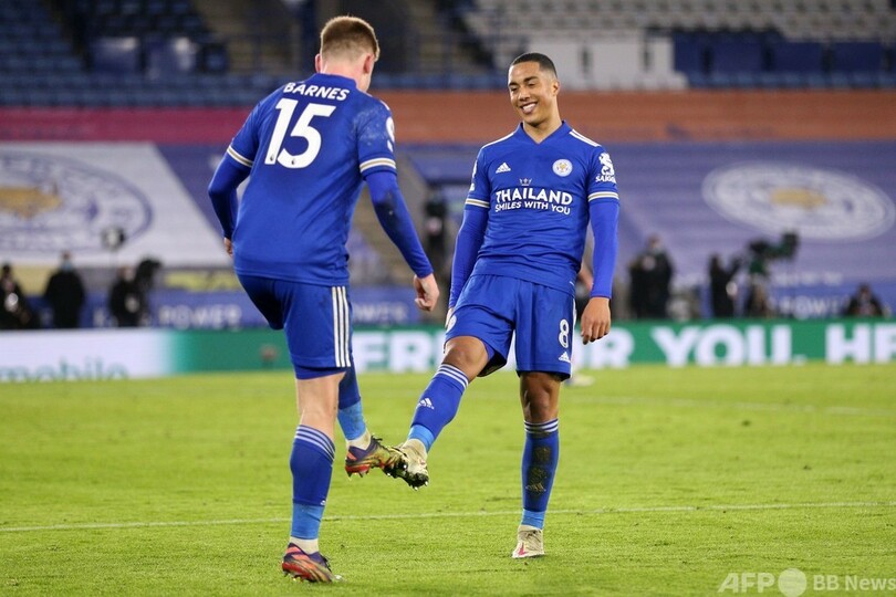 さらにレスターは、後半アディショナルタイムにカウンターからハーヴェイ・バーンズ(Harvey Barnes)が加点し、勝ち点3獲得を決定づけた。(c)AFP/Kieran CANNING