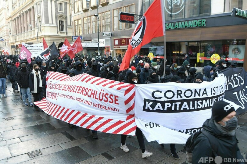 【1月17日 AFP】オーストリアの首都ウィーンで16日、新型コロナウイルス対策の制限措置に抗議し、首相の辞任を求めるデモが行われ、1万人近くが参加した。警察が発表した。