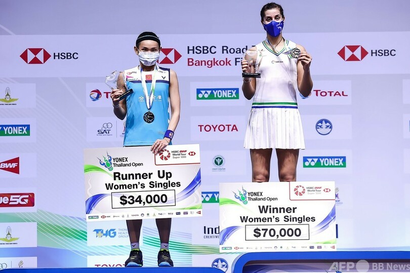 【1月18日 AFP】バドミントン、ヨネックス・タイ・オープン(YONEX Thailand Open 2021)は17日、各種目決勝が行われ、女子シングルスは大会第5シードのキャロリーナ・マリン(Carolina Marin、スペイン)が第1シードの戴資穎 (Tzu Ying Tai、タイ・ツーイン、台湾)を21-9、21-16で下し、優勝を果たした。