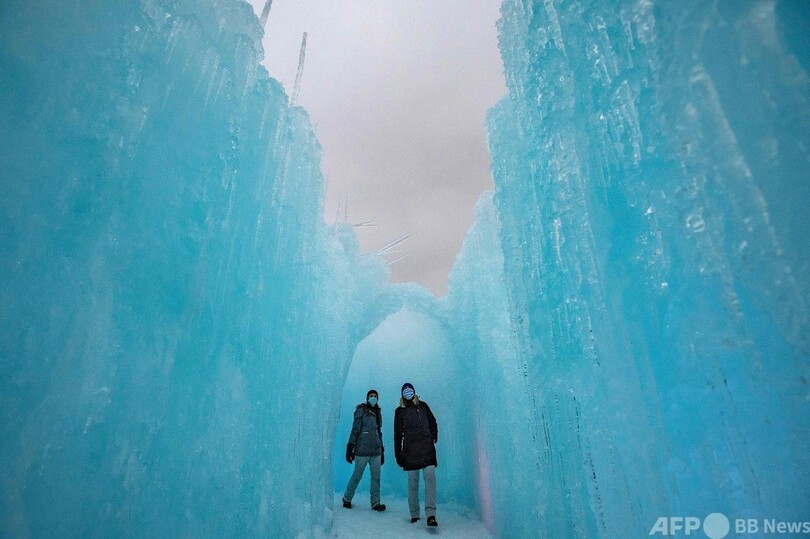 【1月18日 AFP】米ニューハンプシャー州ノースウッドストック(North Woodstock)に14日、「氷の城(Ice Castles)」がオープンし、数百人の人々がライトアップされた氷の壁やトンネルを楽しんだ。高い気温や雨のため2週間延期された後のオープンで、初日の夜はチケットが完売する人気となった。(c)AFP