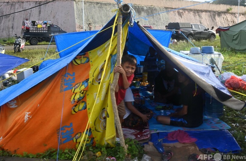 混雑する避難所で新型ウイルスの集団感染が起きることを懸念して、当局は避難者を重症化リスクの高いグループと低いグループに分ける対策を試みている。(c)AFP/Andi Hajramurni, with Dessy Sagita in Jakarta