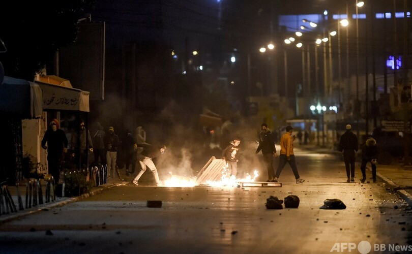 当局によると、チュニスをはじめ複数の都市で起きている連夜の騒乱で、これまでに数十人の若者が逮捕された。