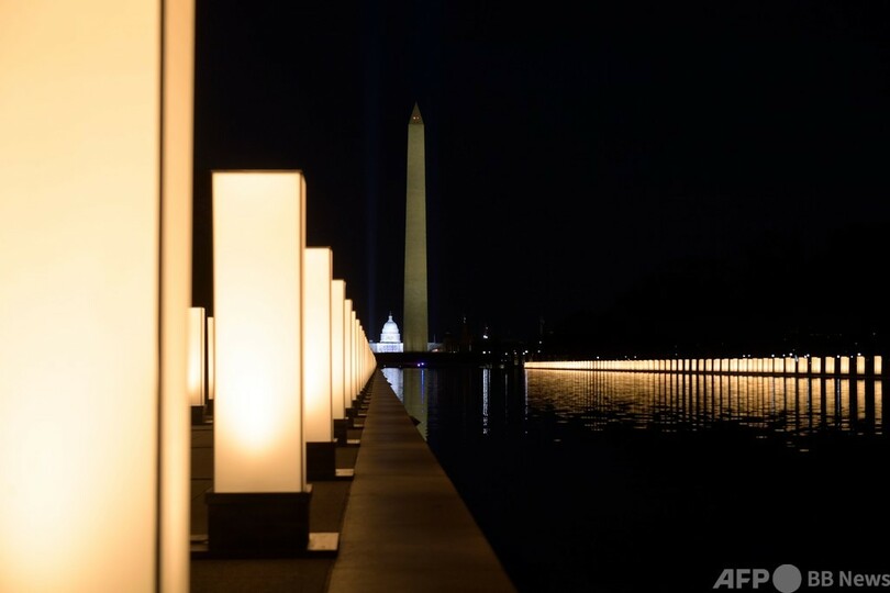 ワシントンに到着したバイデン氏は、リンカーン記念堂(Lincoln Memorial)前にあるリフレクティング・プール(人工池)の脇で短く演説し、厳かな調子で「思い出すのがつらいこともあるが、それが私たちの癒やしの方法だ。国家としてそれを行うことが重要だ」と発言。死者を追悼するために水辺に並べられた400個のライトが点灯すると、「この神聖な池の反射光のように暗闇を光で照らし、亡くなった国民のみんなを思い出そう」と呼び掛けた。
