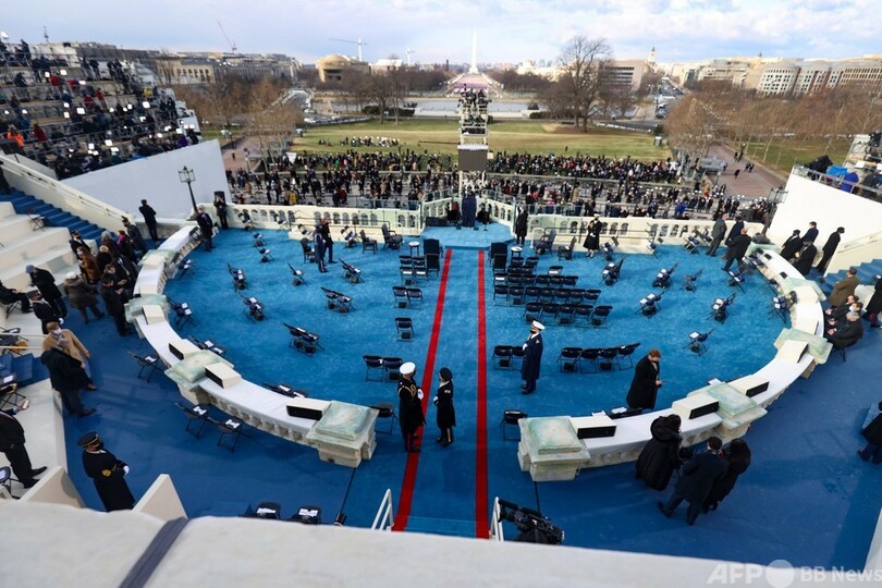 昨年の大統領選で敗北したのは不正があったからだとの誤った主張を2か月にわたり繰り返してきたドナルド・トランプ(Donald Trump)前大統領は、式典を欠席。現大統領が後任の就任式を欠席するのは152年ぶりとなった。(c)AFP