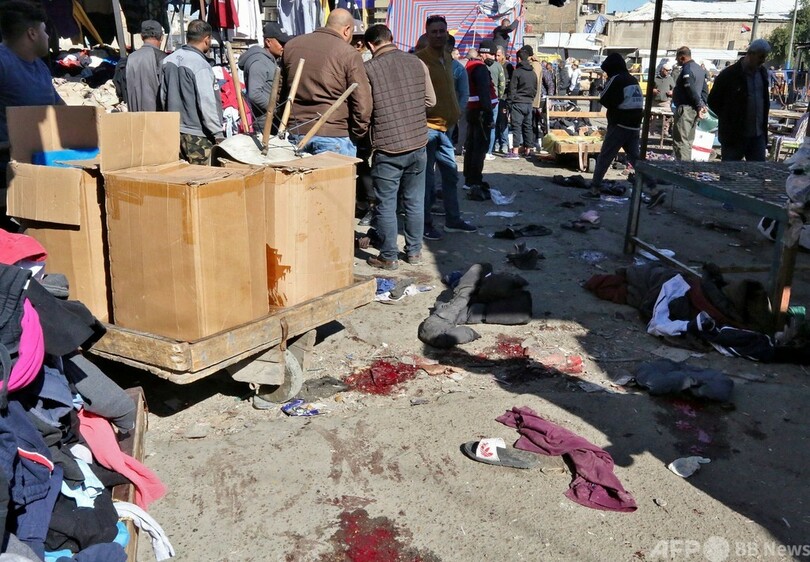 【1月21日 AFP】(更新、写真追加)イラク首都バグダッドの商業地区で21日、連続自爆攻撃が発生した。保健省は、32人が死亡、110人が負傷したと発表した。過去数か月間、同国の情勢は比較的安定しており、また連続攻撃が起きるのはまれ。