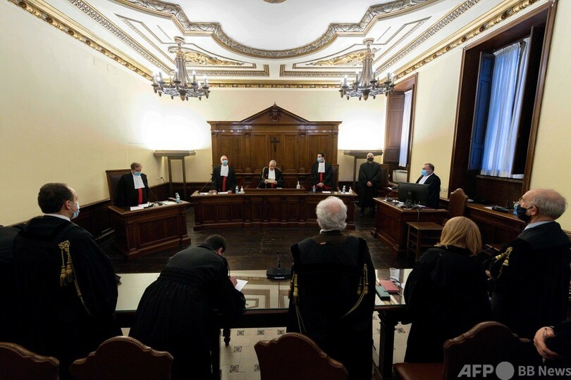 カロイア被告には、残る2人の被告と共に1人当たり8000~1万2500ユーロ(約100万~160万円)の罰金も科され、さらに損害賠償約2300万ユーロ(約29億円)をIORとその不動産部門SGIRに支払うことも命じられた。(c)AFP/Catherine MARCIANO, Alvise ARMELLINI