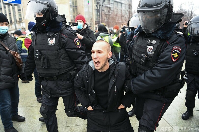 ロシアでは同日、体制批判とナワリヌイ氏の釈放を求める抗議デモが全土で繰り広げられ、首都モスクワでは警察がデモ隊と激しく衝突。各地で計2500人以上が拘束された。