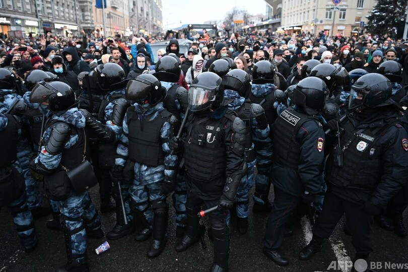 ロシアでは同日、体制批判とナワリヌイ氏の釈放を求める抗議デモが全土で繰り広げられ、首都モスクワでは警察がデモ隊と激しく衝突。各地で計2500人以上が拘束された。