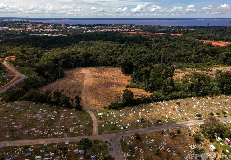 【1月25日 AFP】ブラジル北西部アマゾナス(Amazonas)州の州都マナウス(Manaus)にある地域最大の「アパレシーダの聖母(Nossa Senhora Aparecida)」墓地では、新型コロナウイルスの犠牲者が急増していることを受け、埋葬地の拡張を余儀なくされている。今年に入ってからの埋葬件数は3000を超えている。(c)AFP