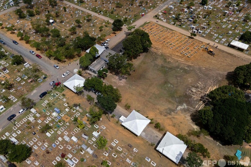 【1月25日 AFP】ブラジル北西部アマゾナス(Amazonas)州の州都マナウス(Manaus)にある地域最大の「アパレシーダの聖母(Nossa Senhora Aparecida)」墓地では、新型コロナウイルスの犠牲者が急増していることを受け、埋葬地の拡張を余儀なくされている。今年に入ってからの埋葬件数は3000を超えている。(c)AFP
