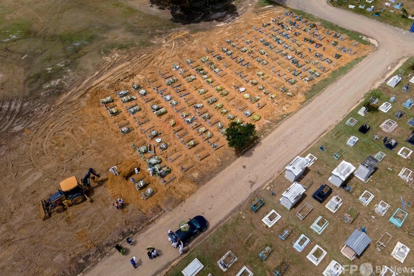 【1月25日 AFP】ブラジル北西部アマゾナス(Amazonas)州の州都マナウス(Manaus)にある地域最大の「アパレシーダの聖母(Nossa Senhora Aparecida)」墓地では、新型コロナウイルスの犠牲者が急増していることを受け、埋葬地の拡張を余儀なくされている。今年に入ってからの埋葬件数は3000を超えている。(c)AFP