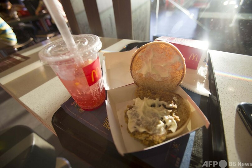北京マクドナルドの店員によると、店内「肉夾饃」の肉の量は統一されているが、具体的な数値は明らかにできないという。(c)CNS/JCM/AFPBB News