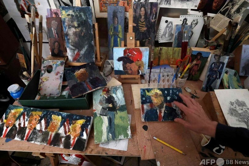 【2月3日 AFP】その顔は不明瞭で不気味だが、なでつけられた金髪とネクタイを見れば、ドナルド・トランプ(Donald Trump)前米大統領であることは明らかだ。そんな肖像画をスタジオを埋め尽くすほどに描いたのはイスラエルの画家、イド・マーカス(Iddo Markus)さんだ。