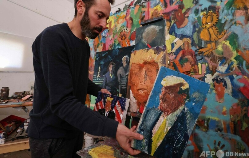 【2月3日 AFP】その顔は不明瞭で不気味だが、なでつけられた金髪とネクタイを見れば、ドナルド・トランプ(Donald Trump)前米大統領であることは明らかだ。そんな肖像画をスタジオを埋め尽くすほどに描いたのはイスラエルの画家、イド・マーカス(Iddo Markus)さんだ。