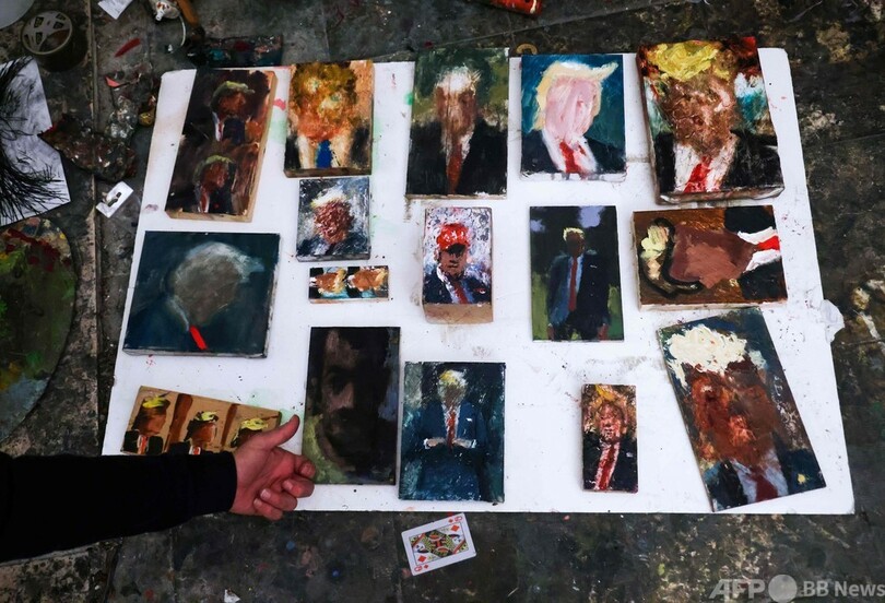 【2月3日 AFP】その顔は不明瞭で不気味だが、なでつけられた金髪とネクタイを見れば、ドナルド・トランプ(Donald Trump)前米大統領であることは明らかだ。そんな肖像画をスタジオを埋め尽くすほどに描いたのはイスラエルの画家、イド・マーカス(Iddo Markus)さんだ。