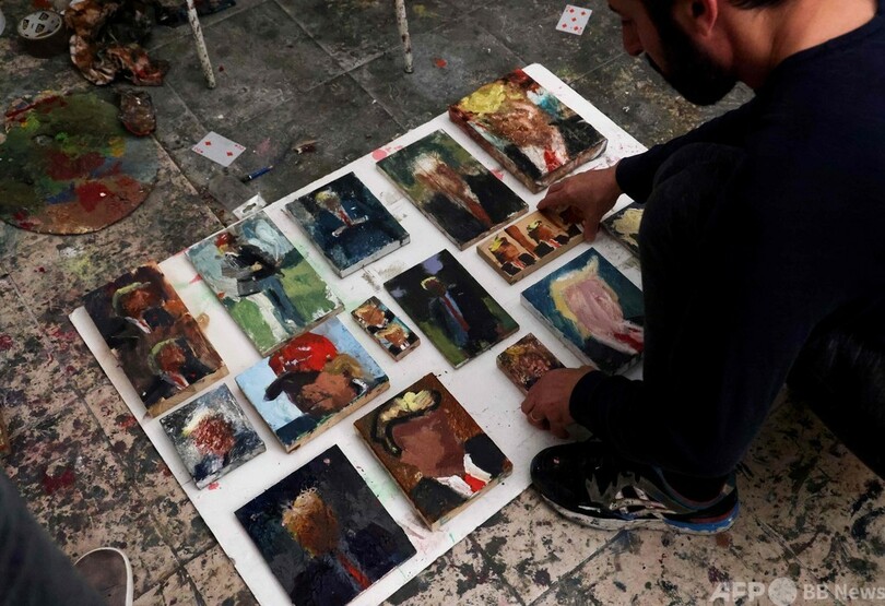 【2月3日 AFP】その顔は不明瞭で不気味だが、なでつけられた金髪とネクタイを見れば、ドナルド・トランプ(Donald Trump)前米大統領であることは明らかだ。そんな肖像画をスタジオを埋め尽くすほどに描いたのはイスラエルの画家、イド・マーカス(Iddo Markus)さんだ。