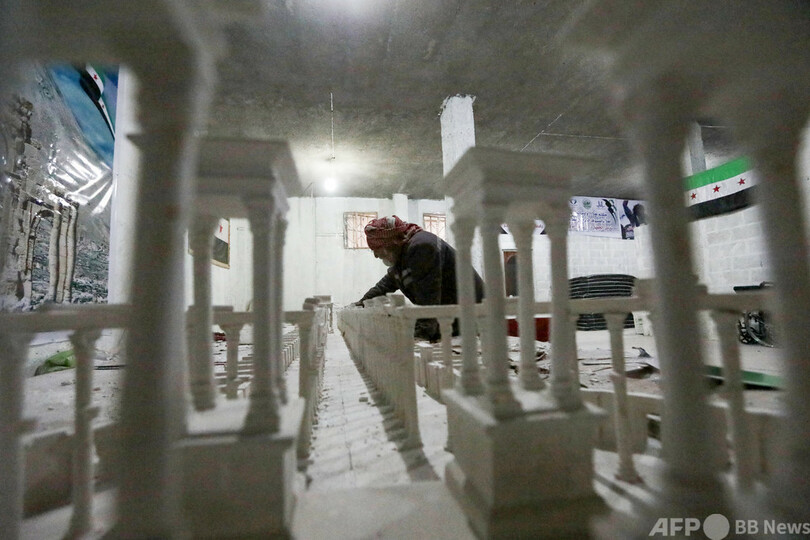 【2月3日 AFP】シリア北部アルバブ(Al-Bab)で、木材と石こうを用いて古代都市パルミラ(Palmyra)の遺跡を再現するアリ・サレー(Ali Saleh)さん(58)。