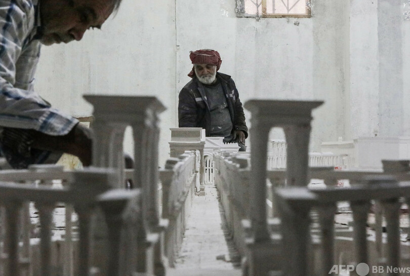 【2月3日 AFP】シリア北部アルバブ(Al-Bab)で、木材と石こうを用いて古代都市パルミラ(Palmyra)の遺跡を再現するアリ・サレー(Ali Saleh)さん(58)。
