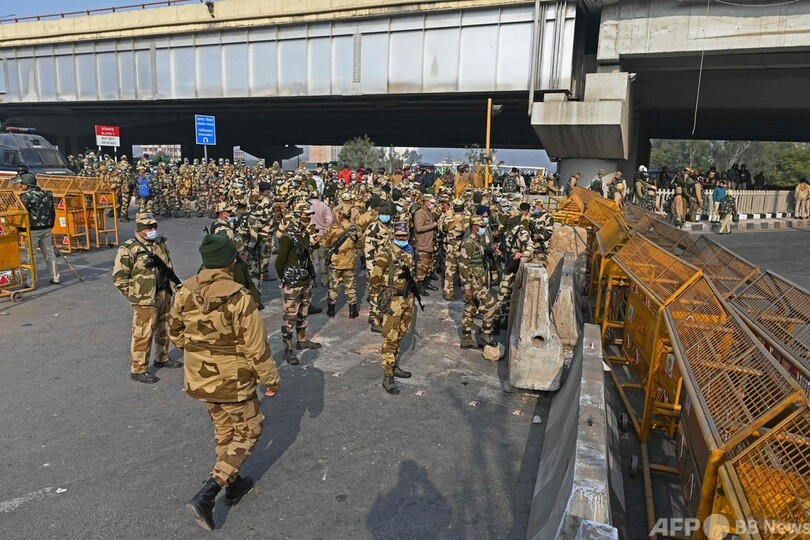 同国では昨年11月以降、農作物の売買に関する規制を緩和する新法に抗議する多数の農民が、首都周辺で野営を続けている。(c)AFP/Bhuvan Bagga, Glenda Kwek and Aishwarya Kumar