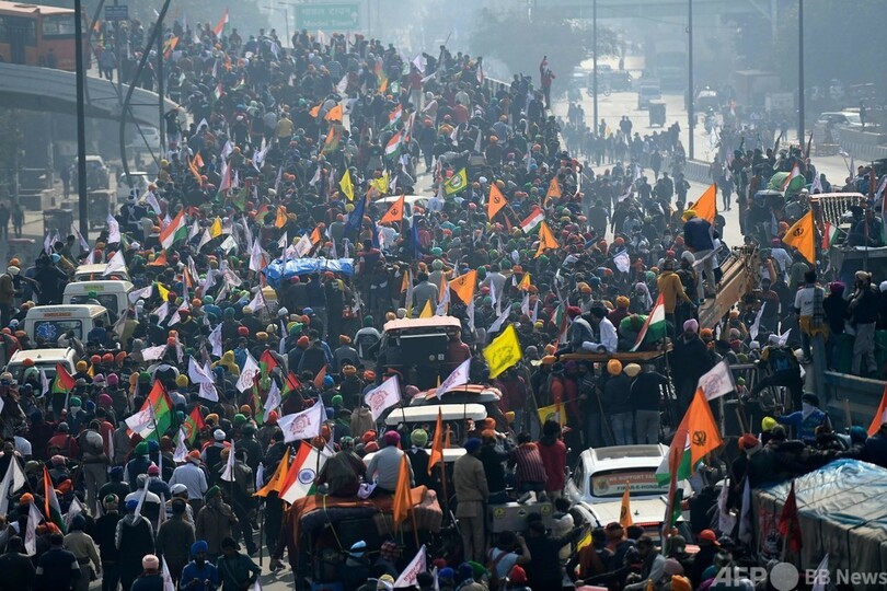 モディ首相は群衆に手を振って車で自邸に戻り、農民と直接対面することはなかった。この抗議デモは、2014年にヒンズー至上主義のモディ政権が発足して以来、最大の問題となっている。