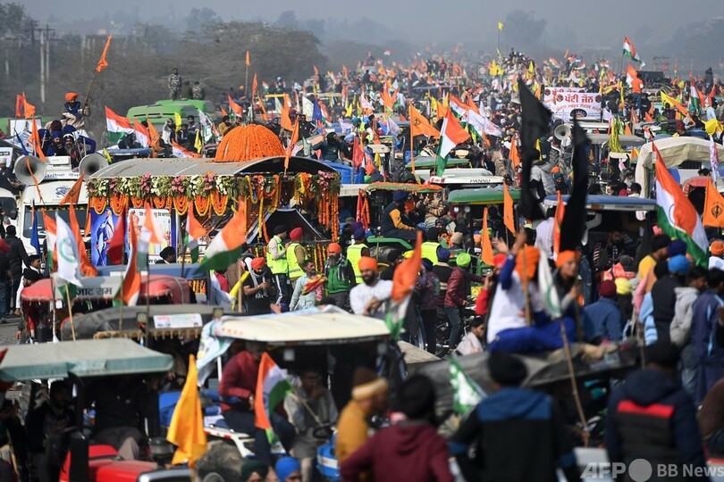 モディ首相は群衆に手を振って車で自邸に戻り、農民と直接対面することはなかった。この抗議デモは、2014年にヒンズー至上主義のモディ政権が発足して以来、最大の問題となっている。