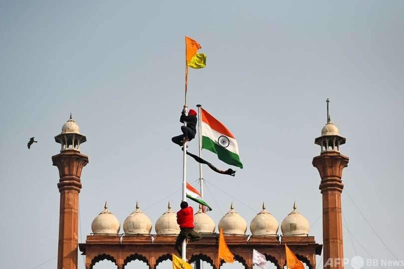 デモ隊の一部は、ナレンドラ・モディ(Narendra Modi)首相や政権幹部が戦車と軍隊の行進や頭上を飛ぶ戦闘機を見守っていた地点から約3キロ離れた主要交差点にまで到達していた。