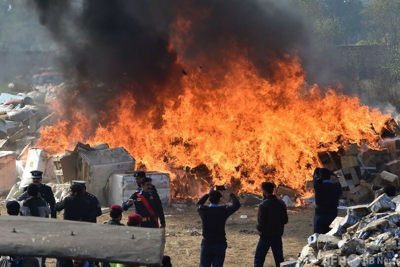 潰して、燃やして…国際税関記念日に押収品処分 パキスタン