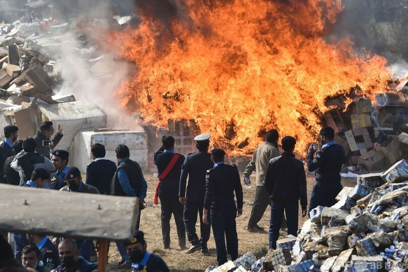 潰して、燃やして…国際税関記念日に押収品処分 パキスタン
