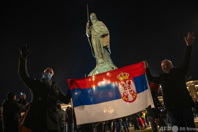 論争となっているのは、セルビア王国を建国した人物として知られる12世紀のステファン・ネマニャ(Stefan Nemanja)王子をモデルにつくられた銅像だ。明るい光で照らされた銅像の高さは23メートルを超える。除幕式が27日に行われた。