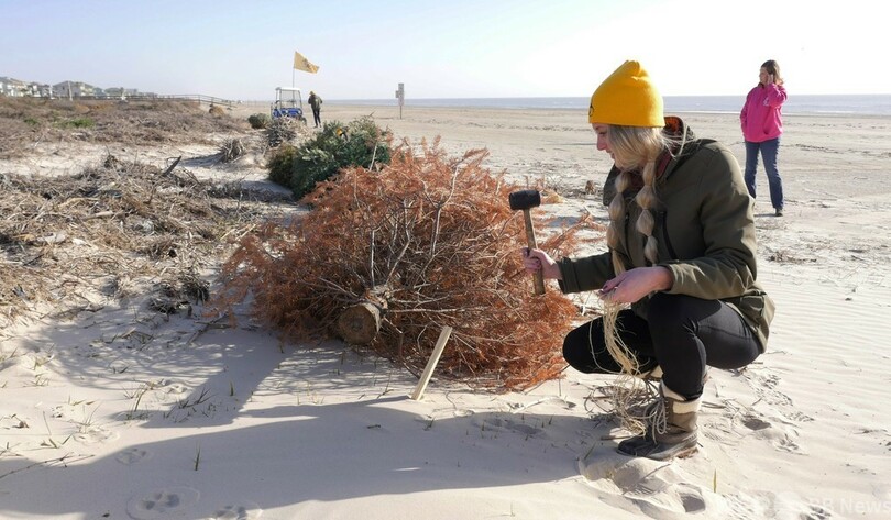 ホリデー後も一役 クリスマスツリーで米ハリケーン被害の砂丘復元