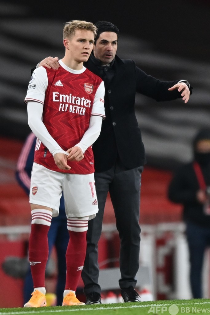 終盤にニコラ・ペペ(Nicolas Pepe)のシュートがわずかに枠をとらえきれなかったアーセナルは、スペイン1部リーグのレアル・マドリード(Real Madrid)からローンで獲得したマルティン・ウーデゴール(Martin Odegaard)が残り7分で投入され、新天地デビューを飾った。(c)AFP/Kieran CANNING