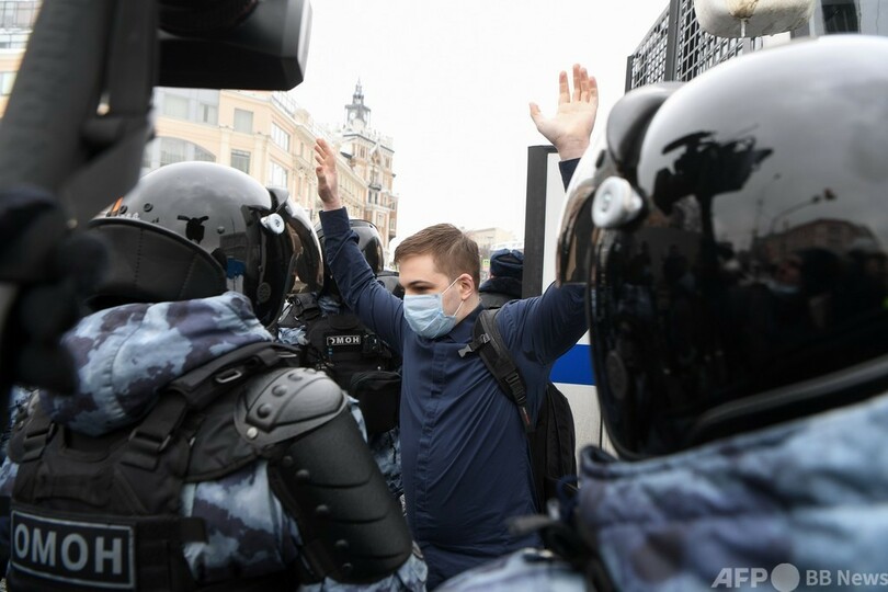 1月31日には、ナワリヌイ氏の支持者らが先週末に続き政府の警告を無視し、極東ウラジオストク(Vladivostok)から北西部プスコフ(Pskov)まで、各地で同氏の逮捕に抗議する大規模デモを行った。監視団体「OVDインフォ(OVD-Info)」によると、参加者5300人超と報道関係者ら90人超が拘束されたという。