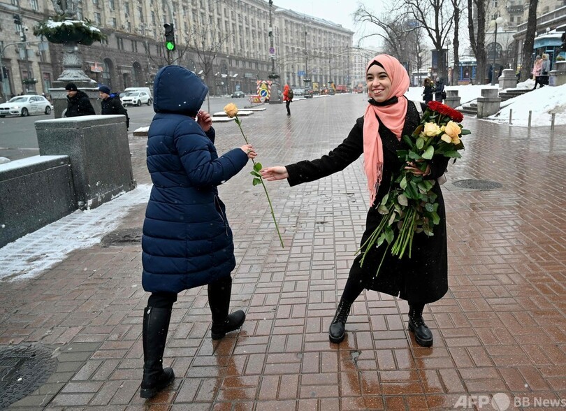 ニュース ライフ 「世界ヒジャブ・デー」 ムスリム女性が周知活動 ウクライナ 2021年2月2日 14:43 発信地:キエフ/ウクライナ [ ウクライナ ロシア・CIS ] このニュースをシェア ‹ › ❮ 5/7 ❯ ウクライナ・キエフで、道行く女性に花を贈るムスリム女性(2021年2月1日撮影)。(c)Sergei SUPINSKY / AFP 画像作成中 ! 【2月2日 AFP】世界ヒジャブ・デー(World Hijab Day)の1日、ウクライナ・キエフではムスリム女性協会のメンバーが、この日を祝して道行く女性に花を配りながら周知活動を行った。(c)AFP ライフ 一覧へ> メディア・報道関係・法人の方向け 写真・動画 購入のお問合せ>
