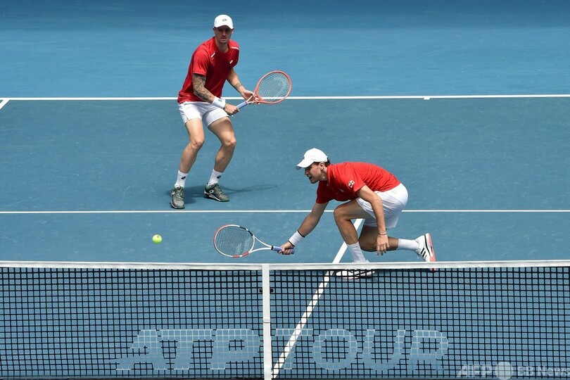 オーストリアは第1試合で世界ランク100位のデニス・ノバク(Dennis Novak)が同17位のファビオ・フォニーニ(Fabio Fognini)を相手に6-3、6-2の大金星を挙げており、ベレッティーニには重圧がかかっていた。1勝1敗のタイで迎えた第3試合のダブルスで、オーストリアはティエムとノバクが再び登場したが、ベレッティーニとフォニーニのペアに1-6、4-6で敗れた。(c)AFP