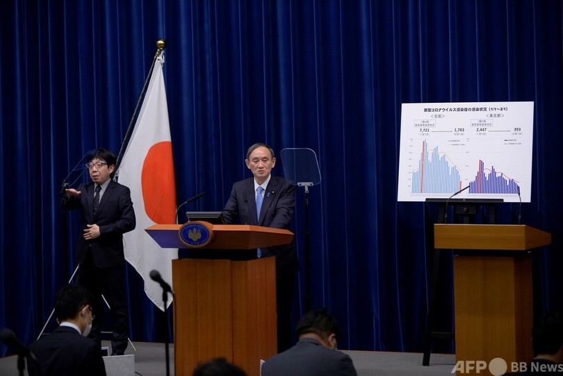 【2月2日 AFP】菅義偉(Yoshihide Suga)首相は2日、11都府県を対象とした新型コロナウイルスの緊急事態宣言について、東京など10都府県で来月7日まで1か月延長することを、政府の対策本部の会合で発表した。延期された東京五輪の開催予定日まで6か月を切った時点での表明となった。(c)AFP