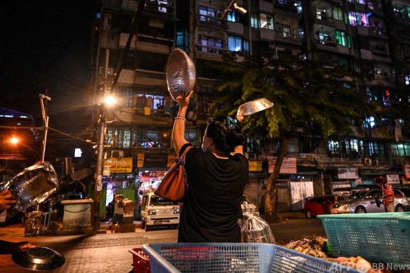 「悪霊を追い払え」 鍋をたたいてクーデターに抗議 ミャンマー