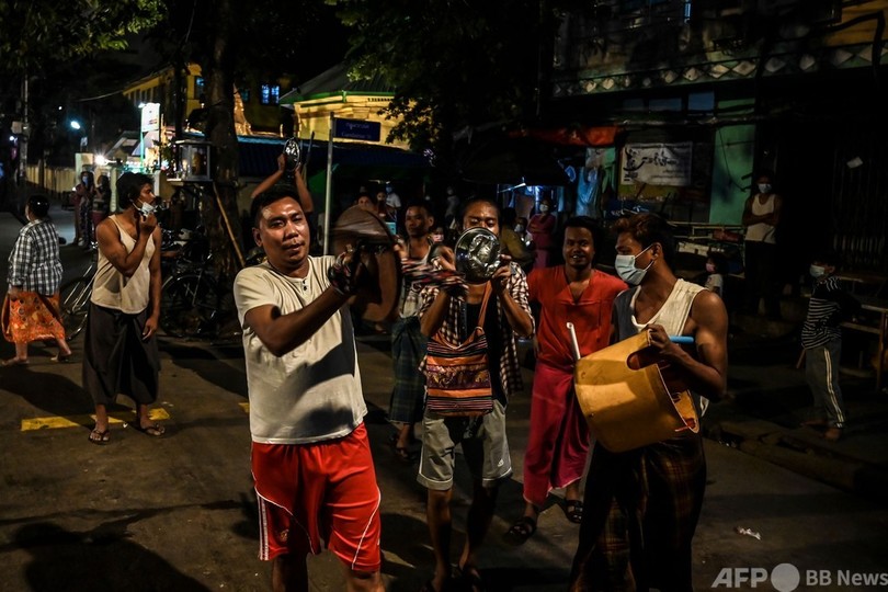 「悪霊を追い払え」 鍋をたたいてクーデターに抗議 ミャンマー