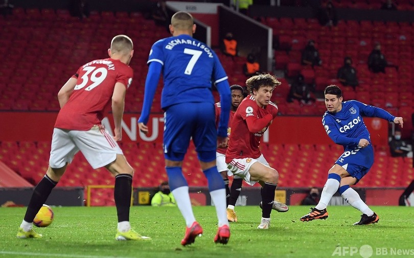 本拠地オールド・トラフォード(Old Trafford)でユナイテッドは、ポイントで首位シティに並ぶかに思われたが、後半アディショナルタイム5分にドミニク・キャルバート・ルーウィン(Dominic Calvert-Lewin)に同点ゴールを許し、勝ち点2を取りこぼした。